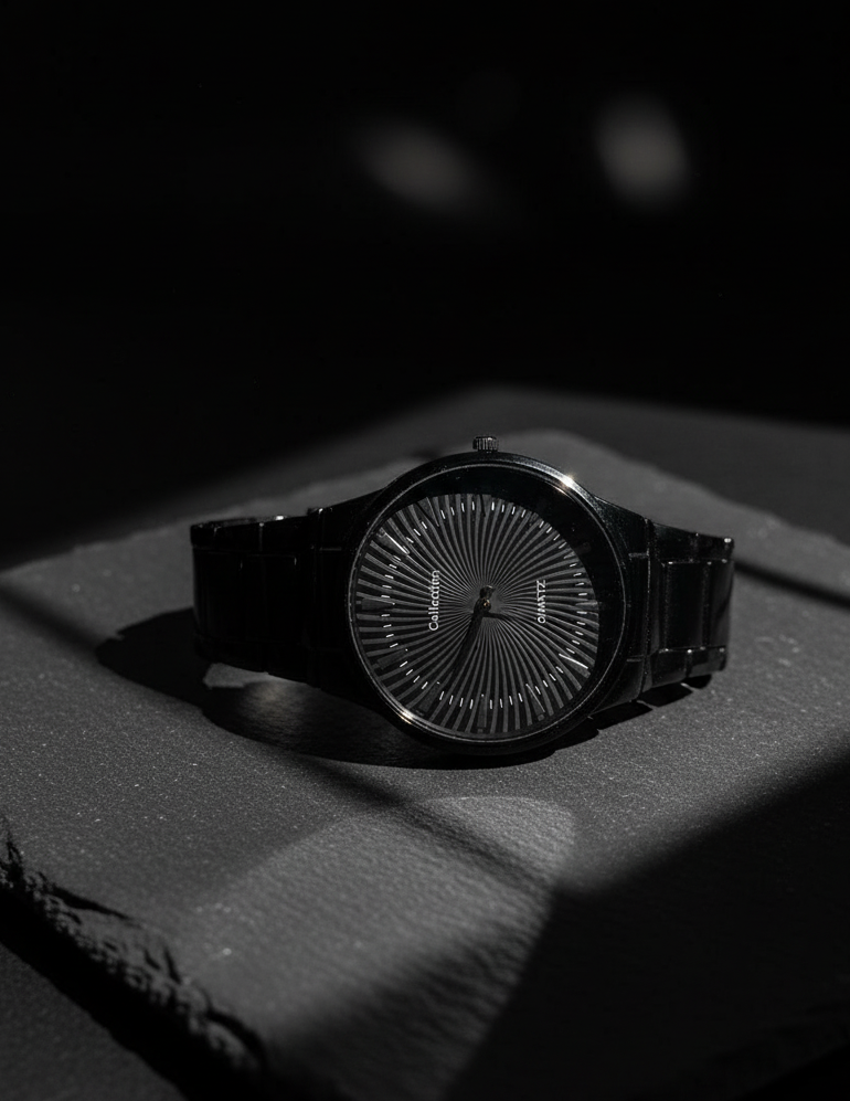 هذه الساعة السوداء الراقية تجسد روح الفخامة الهادئة. بفضل تصميمها الداكن وتفاصيلها الدقيقة، تمنحك حضوراً قوياً وأناقة لا تحتاج إلى كلمات.